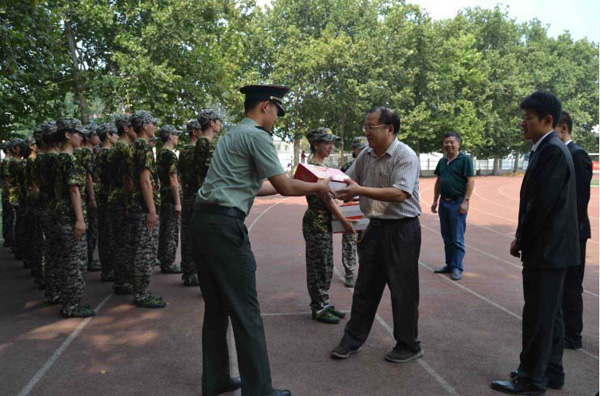 9月18日上午,在院党委书记耿超明、院长冯建灿、副院长孙治强的带领下,院团委老师们组成的中秋慰问团队看望正在军训的2013级新生及教官。