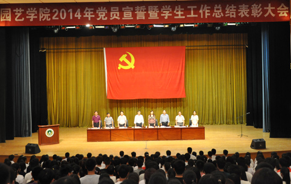 在校大礼堂隆重举行了2014年党员宣誓暨学生工作总结表彰大会。校党委组织部部长杨志清,校学生工作部副部长张红阳,肉番
