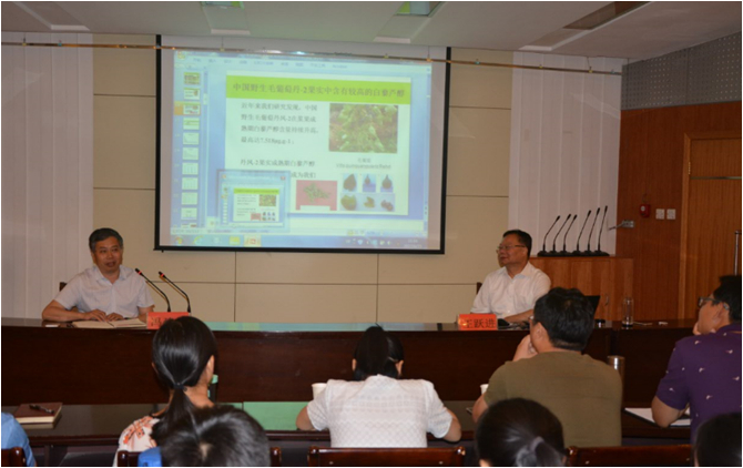 6月15日上午9:00,西北农林科技大学王跃进教授应肉番 邀请,在100人报告厅为肉番师生做学术报告,题目是“中国野生葡萄抗性基因功能研究”。报告会由肉番 院长冯建灿教授主持,院党委耿超明书记,侯亚兵副书记,副院长孙守如教授及部分教师和研究生参加了报告会。