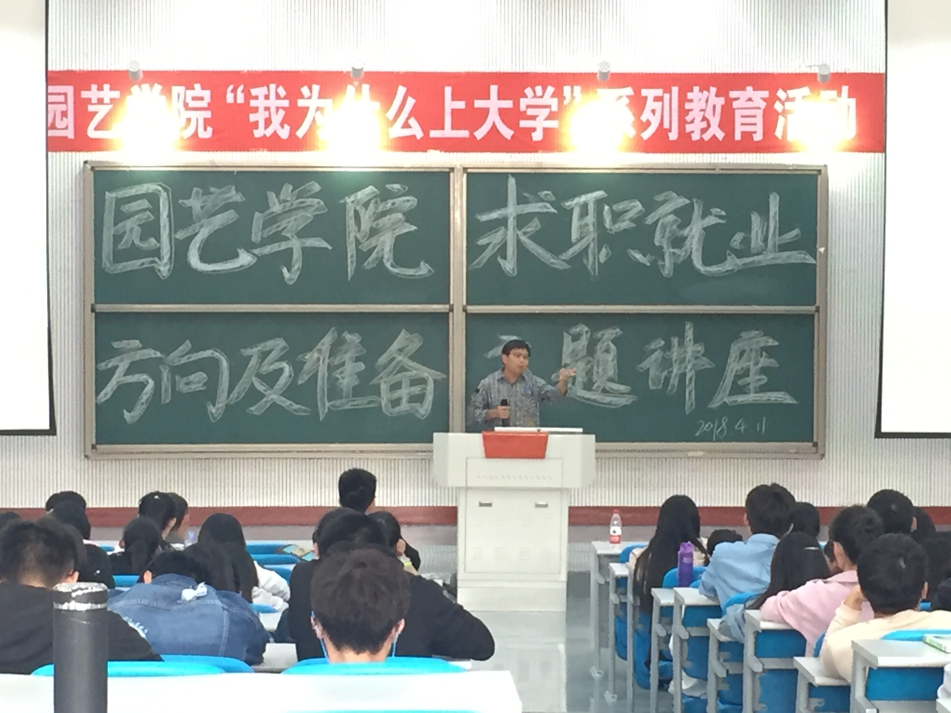 4月11日,肉番于繁塔楼A、B楼之间大教室二组织进行了以“求职就业方向及准备”为主题的讲座活动,蔬菜系教授马长生主讲,17级辅导员陈桃及17级学生参与。