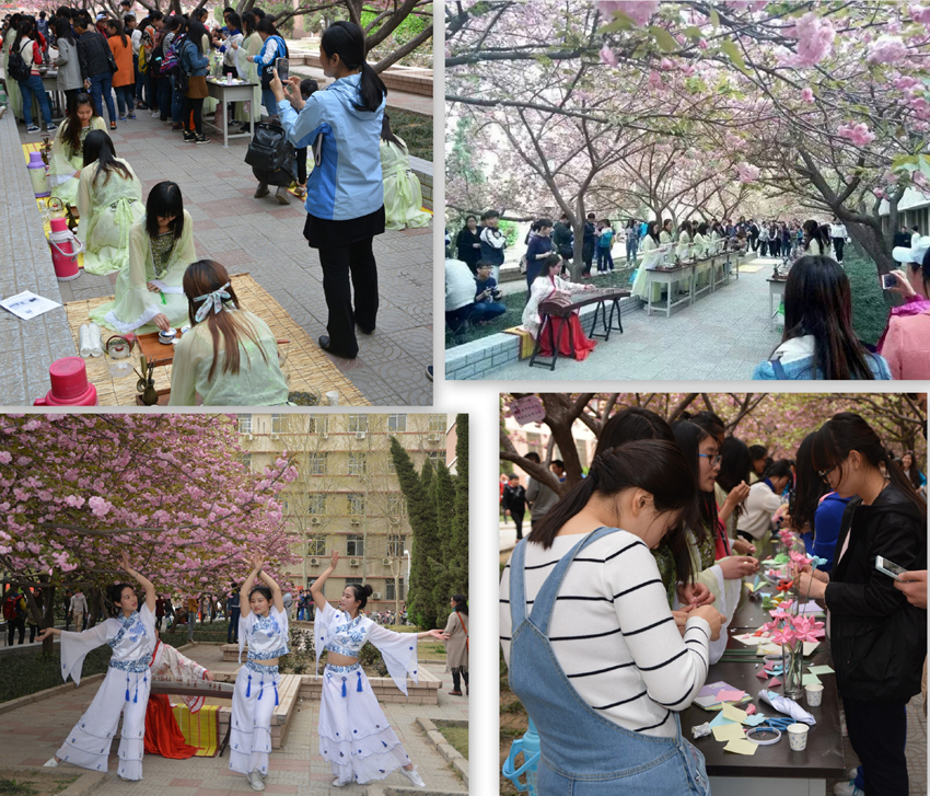 3月29日,肉番 茶轩社承办的“点亮”校园精品文化展示之“樱花香茗齐竞雅”活动在文化路校区樱花小道举行。