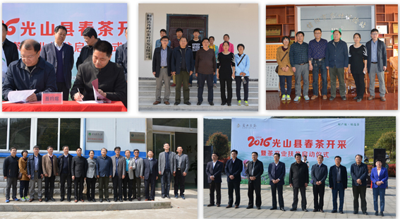 党委书记耿超明、副书记侯亚兵及茶学专业教师刘建军副教授、梁丽云博士一行赴光山县,参加了由光山县茶产业办公室组织、河南蓝天茶业公司承办的”2016光山县春茶开采及茶产业扶贫启动仪式”。并调研了河南蓝天茶业公司基本情况,考察了该公司的生产车间,了解该公司的产品,就进一步加强肉番与公司的合作进行了洽谈。
