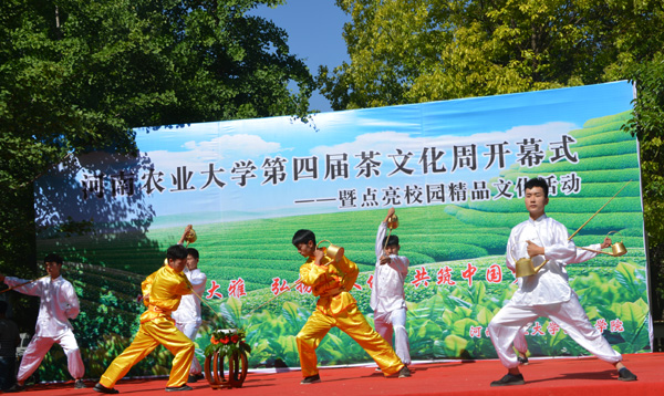 第四届茶文化周在工程楼南广场拉开帷幕。本次活动以“小茶见大雅,弘扬茶文化,共筑中国梦”为主题,通过茉莉花盖碗,长嘴壶,书法,香茗T台等表演方式,让大家在茶韵中体悟中国“茶礼”文化。校党委书记程传兴老师、校党委副书记、工会主席褚金海老师、副校长谭金芳老师、宣传部部长郭占伟老师、学工部部长夏越新老师、校团委书记余磊老师、教务处副处长宋安东老师等部门负责人出席了此次活动,肉番
