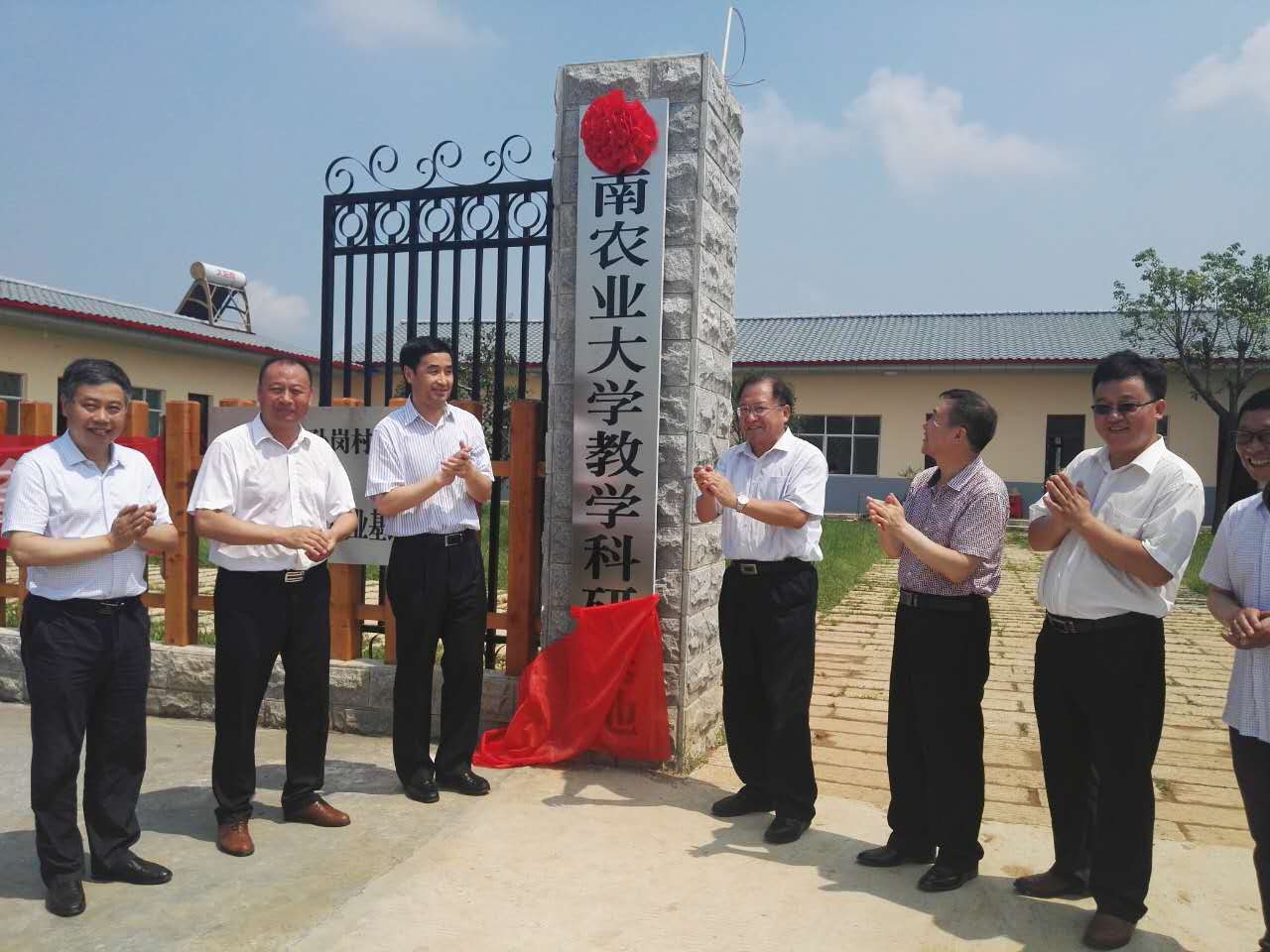 6月22日上午,“肉番 与信阳亚森生态农林开发有限公司合作的科研教学实习基地”揭牌仪式在信阳亚森生态农林开发有限公司基地隆重举行。院党委书记耿超明、院长冯建灿、果树系相关教师、罗山县县委相关领导和信阳亚森生态农林开发有限公司董事长李世江等50余人参加了揭牌仪式。