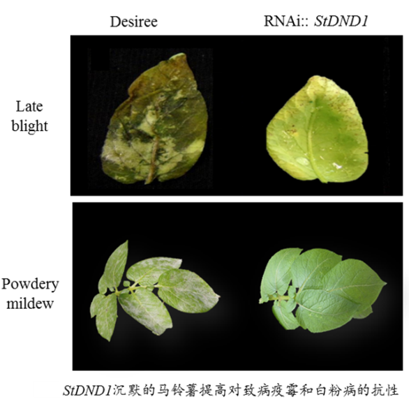 项目简介:本研究将在前期沉默感病基因StDND1提高马铃薯对晚疫病的抗性基础上,进一步利用显微镜技术、测序技术、生物化学及分子生物学方法了解致病疫霉菌在植物表面的生存状况并全面解析由其介导的抗病调控途径,结合qRT-PCR、StDND1沉默后的马铃薯相关材料的转录组数据确定与抗病密切相关的候选基因并进行功能验证。探寻基因StDND1在调节马铃薯对晚疫病抗性中所起到的作用,根据所获得的实验结果,挖掘新的感病基因,丰富抗病植物的基因资源;同时利用新一代的基因编辑技术CRISPR/Cas9,构建相关候选基因CRSIPR/Cas9马铃薯植株,为我国新一轮农业生物技术产品研发领域占据优势。由于感病基因在不同作物间的高度保守性,这种方法还可以应用到其它作物中,为作物抗病育种提供新的抗病资源。