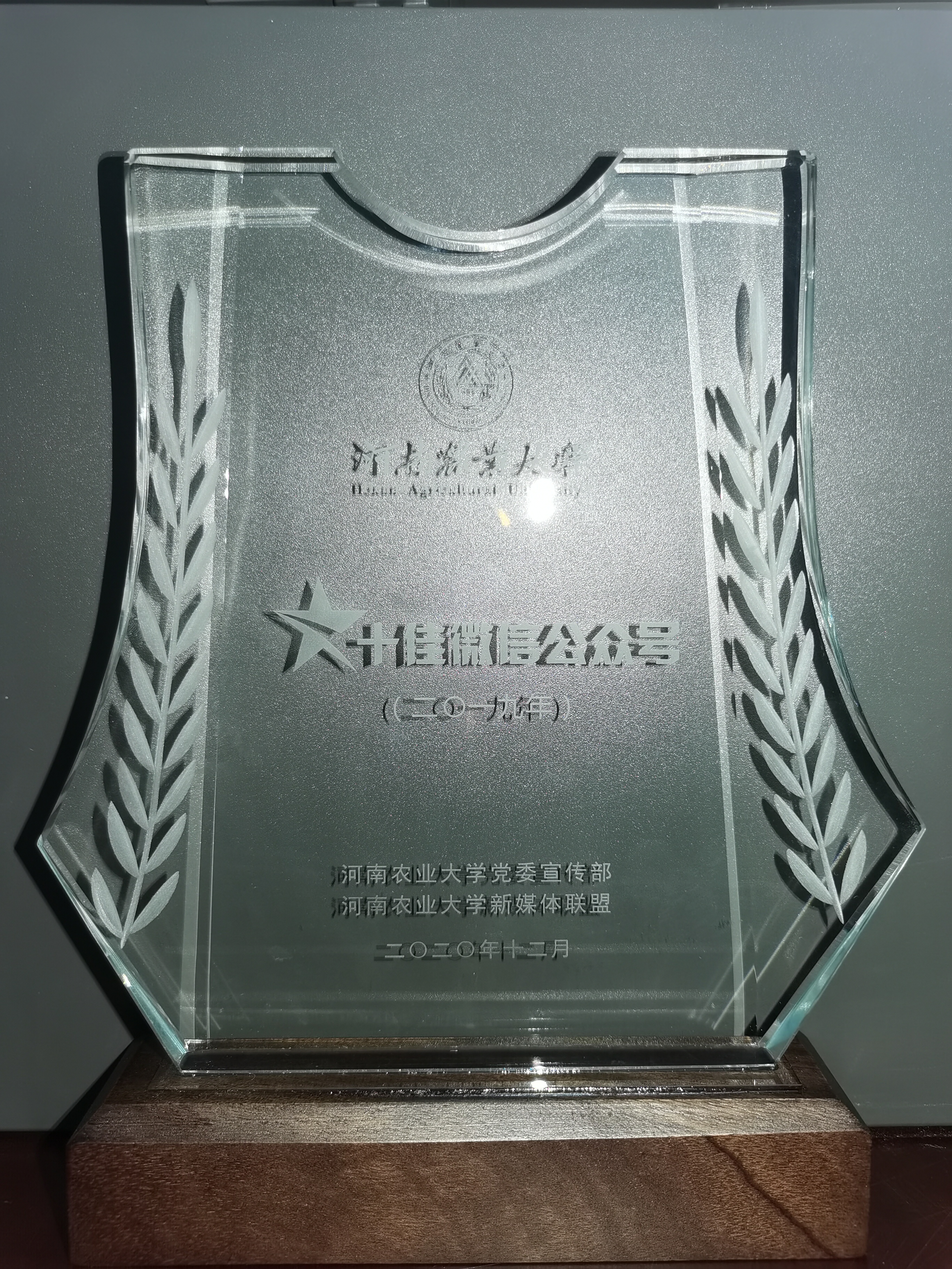 肉番微信公众号在网络舆论引导、品牌形象宣传、先进文化传播、师生校友服务等方面内容质量高、传播范围广。如对肉番园艺文化节、茶文化节等特色活动进行推送,对冬剪、学习之星等系列专项推文;同时,肉番 公众号运行有较完整的组织架构、固定的运营团队、明确的工作分工和稳定的信息推送。在参评公众号中综合表现优秀,荣获2019年肉番 “十佳微信公众号”荣誉称号,院团委书记冯帅代表肉番 领奖。(撰文/冯瀚瀚 审核/毛会坡 发布/冯瀚瀚)