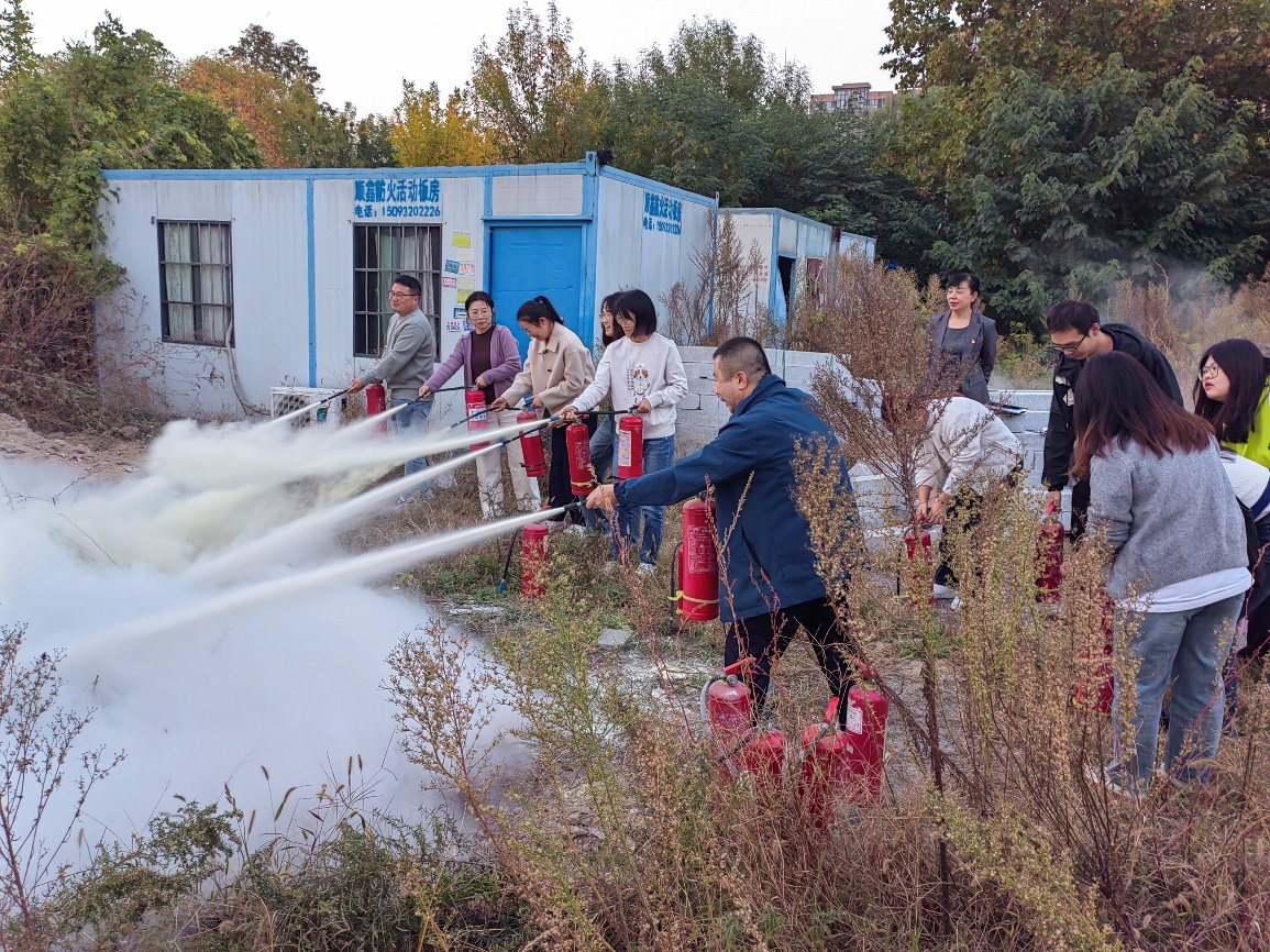 消防监督员王林忠老师现场为新进教师和研究生讲解并演示灭火器和灭火毯的实际操作方法。老师和学生们按照一摇、二提、三拔、四握、五压的程序,逐一演练正确使用灭火器的方法和步骤。通过真实模拟灭火演练,不仅达到了师生能够熟练操作灭火器的目的,也切实提高了大家在突发事件下的应急反应能力。