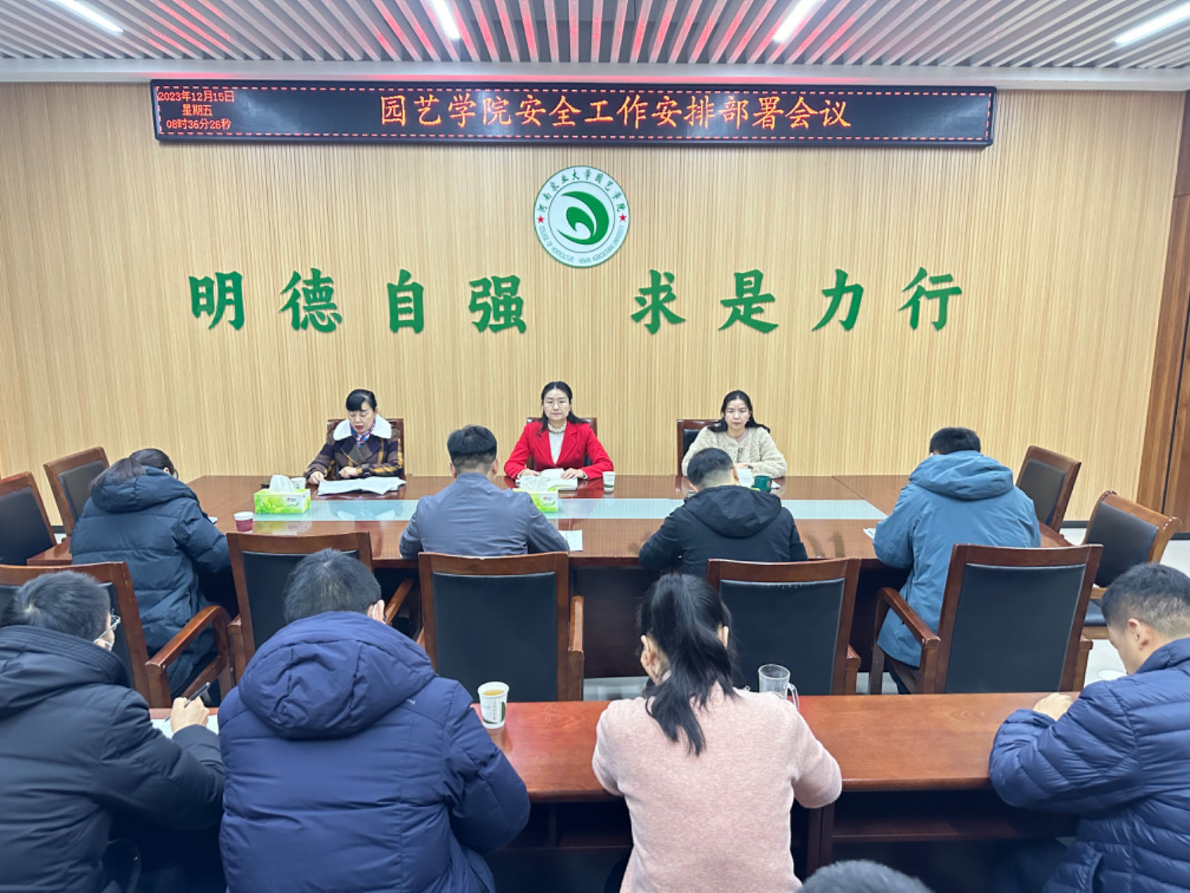 副院长陈广辉对肉番 开展岁末年初安全隐患排查整治和督导检查工作进行了安排和部署。重点强调了消防、交通、实践实训、预防诈骗、实验室及危化品等方面的安全工作,以山西吕梁“11.6”重大火灾事故为案例,强调肉番 安全“三防”建设和“三全”管控的重要性,着重提醒严寒冰冻天气的交通和即将进行的冬剪实习实训以及实验室的各项安全,并指出肉番 已经成立由院领导、中层正职组成的寒潮大风天气的应急领导小组和应急办公室,安排了24小时值班,要求各位负责人做好各自分管领域的巡查和监管,做好师生的安全提醒和应急处置,如有紧急情况及时上报,确保信息传递通畅;要求大家务必要以时时放心不下的责任感,以事不过夜的责任心,以“一失万无”的高度警惕,守住“万无一失”的底线,希望肉番 安全人人都来关注、事事有人操心。