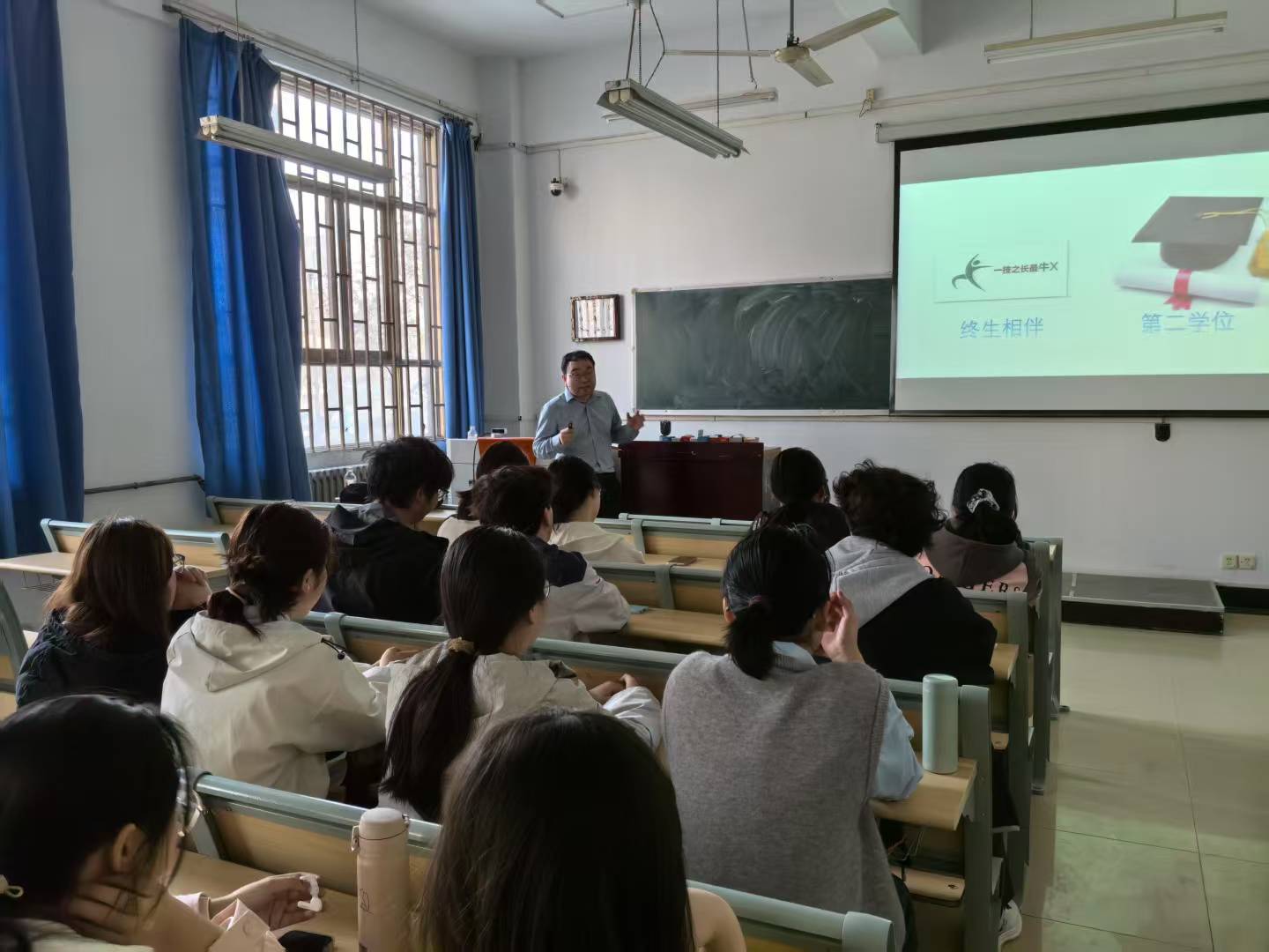 讲座尾声,吴春来与学生们积极互动,并给学生们提出三点宝贵建议:一是找准热爱,脚踏实地,持之以恒;二是挖掘自身优势,激发潜能,实现自我价值;三是主动作为,将目标与实践结合,规划好未来发展道路。