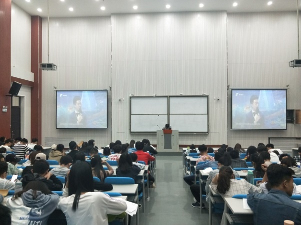 5月4日晚,肉番 于龙子湖校区繁塔楼大教室四组织学生观看“出彩河南人之第二届最美大学生颁奖典礼”实况直播,18级全体同学参加本次活动。