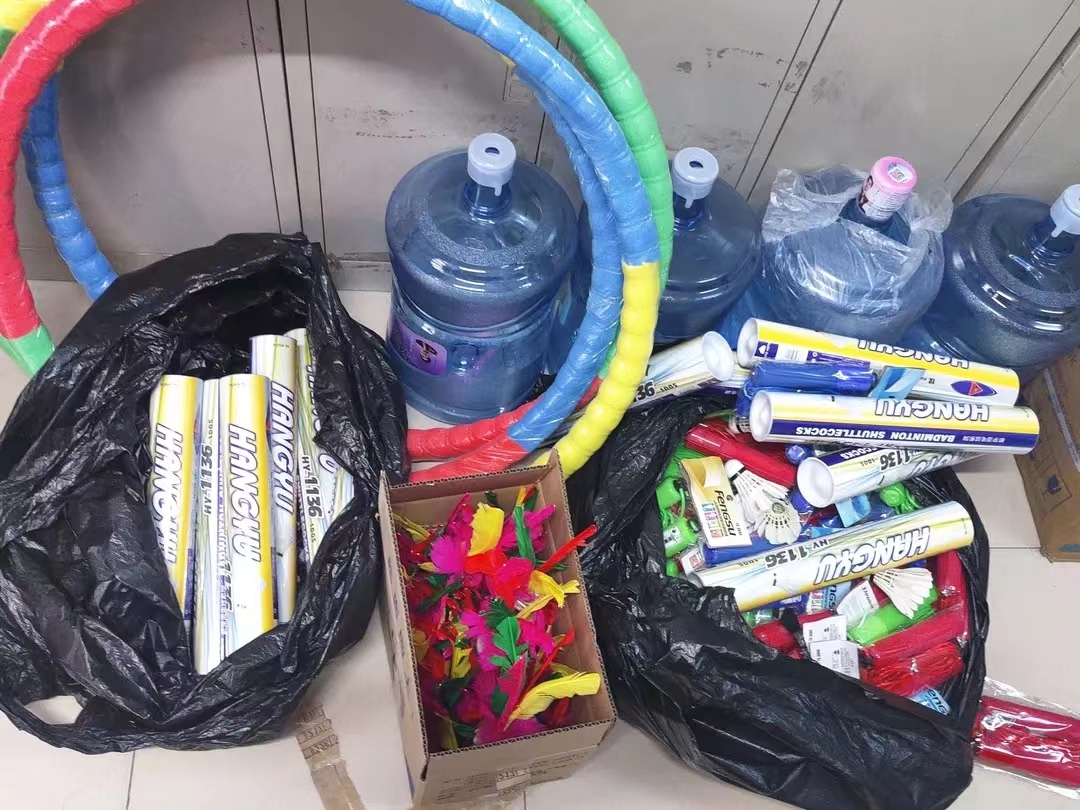 购置的毽子、呼啦圈、跳绳、羽毛球拍和羽毛球等运动健身器材,希望大家在学校疫情防控闭环管理期间,创造性的利用现有空间,平时多多运动,在运动中收获健康,在健康中享受快乐,在快乐中体验美好生活,促进身心健康发展。