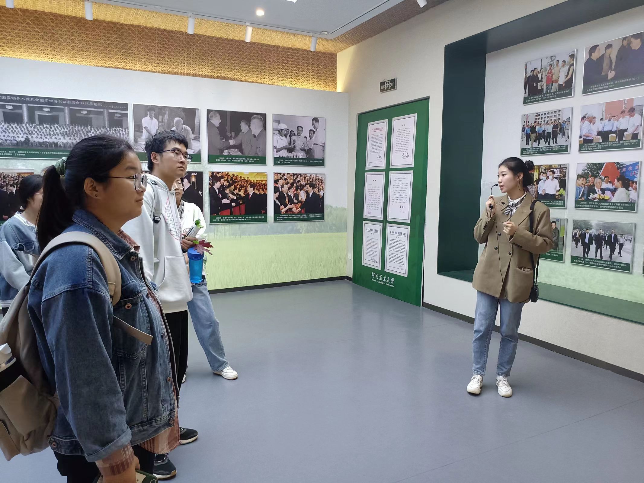 悠久的历史、杰出的代表、丰硕的成果。学校的发展既是一部自强不息的创业史,也是一部与时俱进的开拓史。展厅中的文字档案和照片视频,充分展示了老一辈农大人艰苦奋斗的历程,承载了农大人在这段历史中所肩负的责任使命与付出的拼搏努力。在活动过程中,新生与讲解员积极互动,认真倾听,积极提问,还不时的停下脚步拍照记录并交流学习心得,整个参观过程井然有序,现场气氛十分融洽。