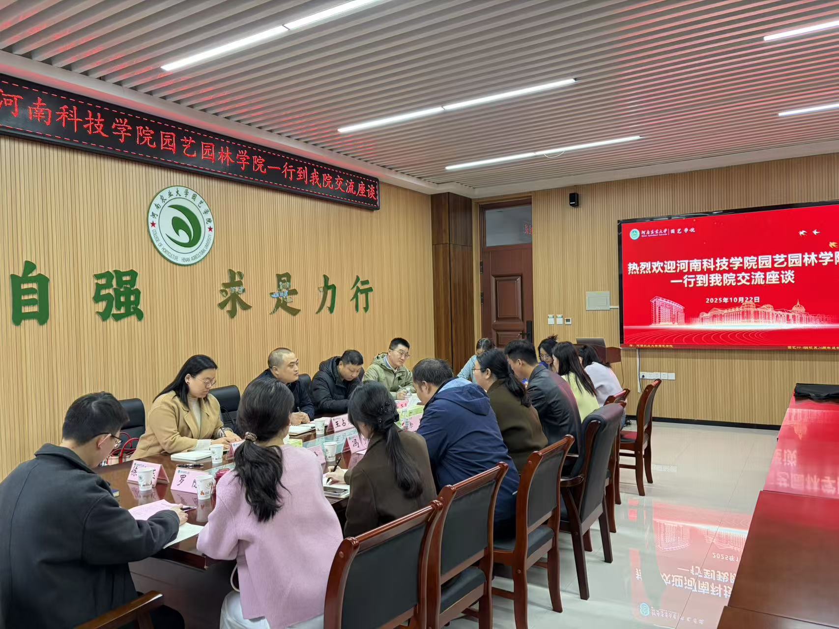 与河南科技学院园艺园林学院交流座谈会在龙子湖校区力行楼北 215 会议室成功举办。河南科技学院园艺园林学院党委副书记、纪委书记、工会主席王占魁带队,研究生秘书姚正阳、团委书记刘璐等一行 4 人出席交流;肉番