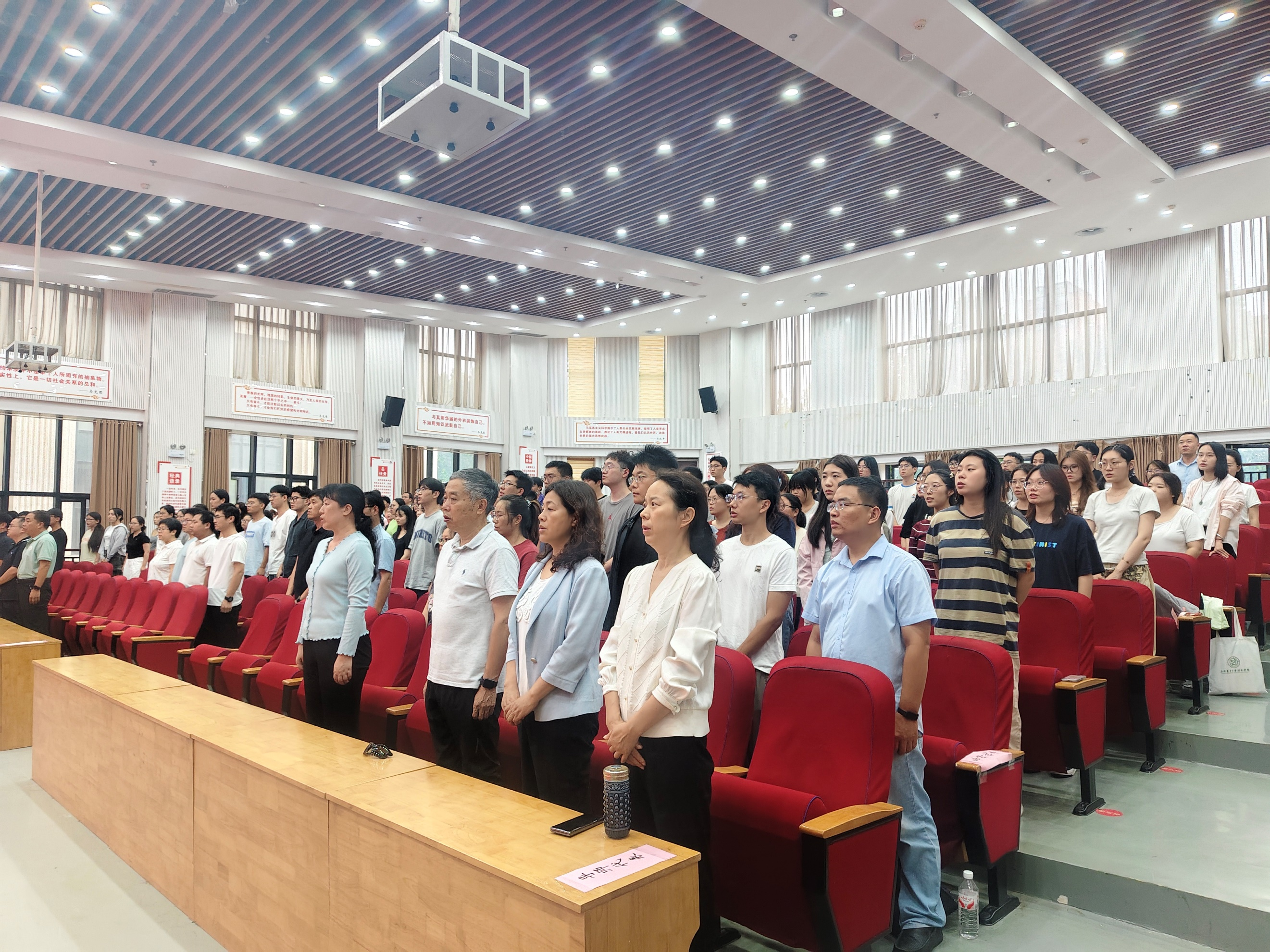 开学典礼在庄严的国歌声中拉开帷幕,随后胡建斌依次介绍了出席典礼的导师代表,不仅让新生们对学院的师资力量有了初步了解,也为他们后续的学习科研搭建了沟通的桥梁。