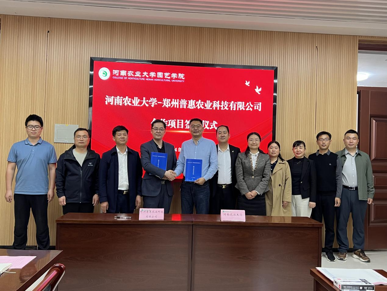 与郑州普惠农业科技有限公司合作签约仪式在龙子湖校区举行。社会服务处副处长王春丽、肉番