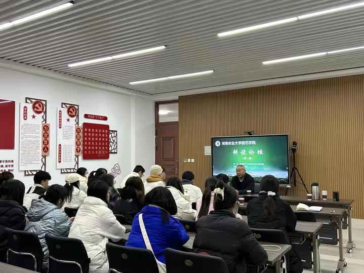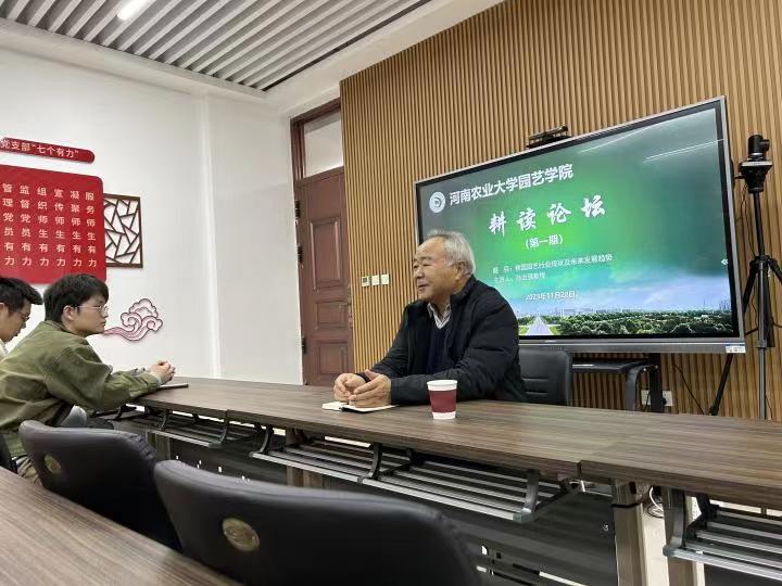 “耕读论坛”(第一期)在龙子湖校区力行楼北211活动室举行,特邀孙治强教授主讲,园艺22-6班全体同学参加,班主任毛文文主持。