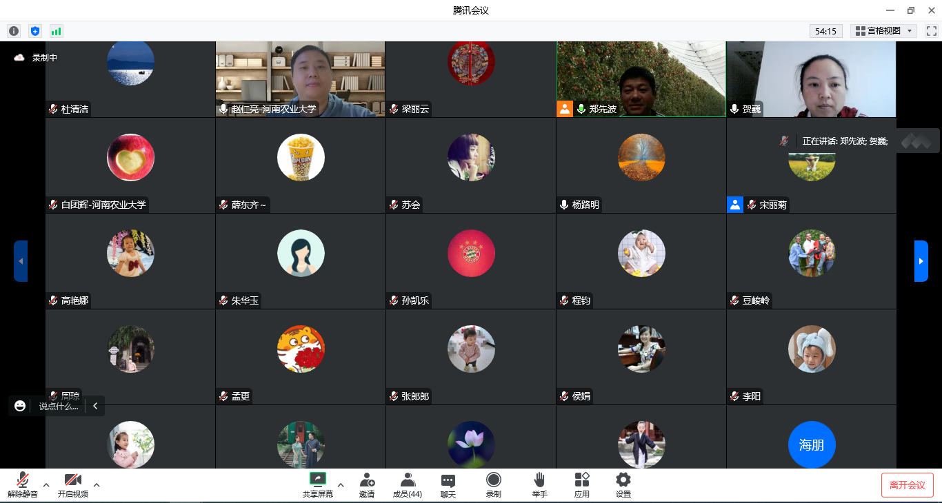 目前授课开课的基本情况,本学期学院总共开课43门,实验课程有30门,实践课程13门,目前已结课课程7门。接着,各课程负责人针对目前未结课课程汇报了当前课程的教学进度、实验课进展情况、实践课程计划以及考试安排等工作。对于实验、实践课程,教师们开展了大量积极有效的探索实践:比如有些教师通过线上线下结合方式,教师线上讲解,研究生在实验室现场演示,学生观看;有些教师在自己家里进行现场操作直播讲解;有些教师把实验材料提前发给学生,通过视频方式在线指导实验;有些教师依托虚拟仿真实验教学平台进行实验;还有些教师去三区或者毛庄基地进行现场直播讲解。对于实验和实践课程开展,不管是场所、仪器设备,还是实验耗材等方面,中心实验室将全力配合,保障各项教学工作顺利开展。对于考试方式方面,课程负责人也畅所欲言,分享经验,有利用超星学习通和腾讯会议进行双机位考试,有通过论文方式考查,有通过英文翻译结合试卷考试,有通过小组汇报PPT形式结合试卷考试,有通过小组辩论赛结合试卷考试等。通过一个半小时的分享与交流,为顺利完成教学工作奠定了基础。