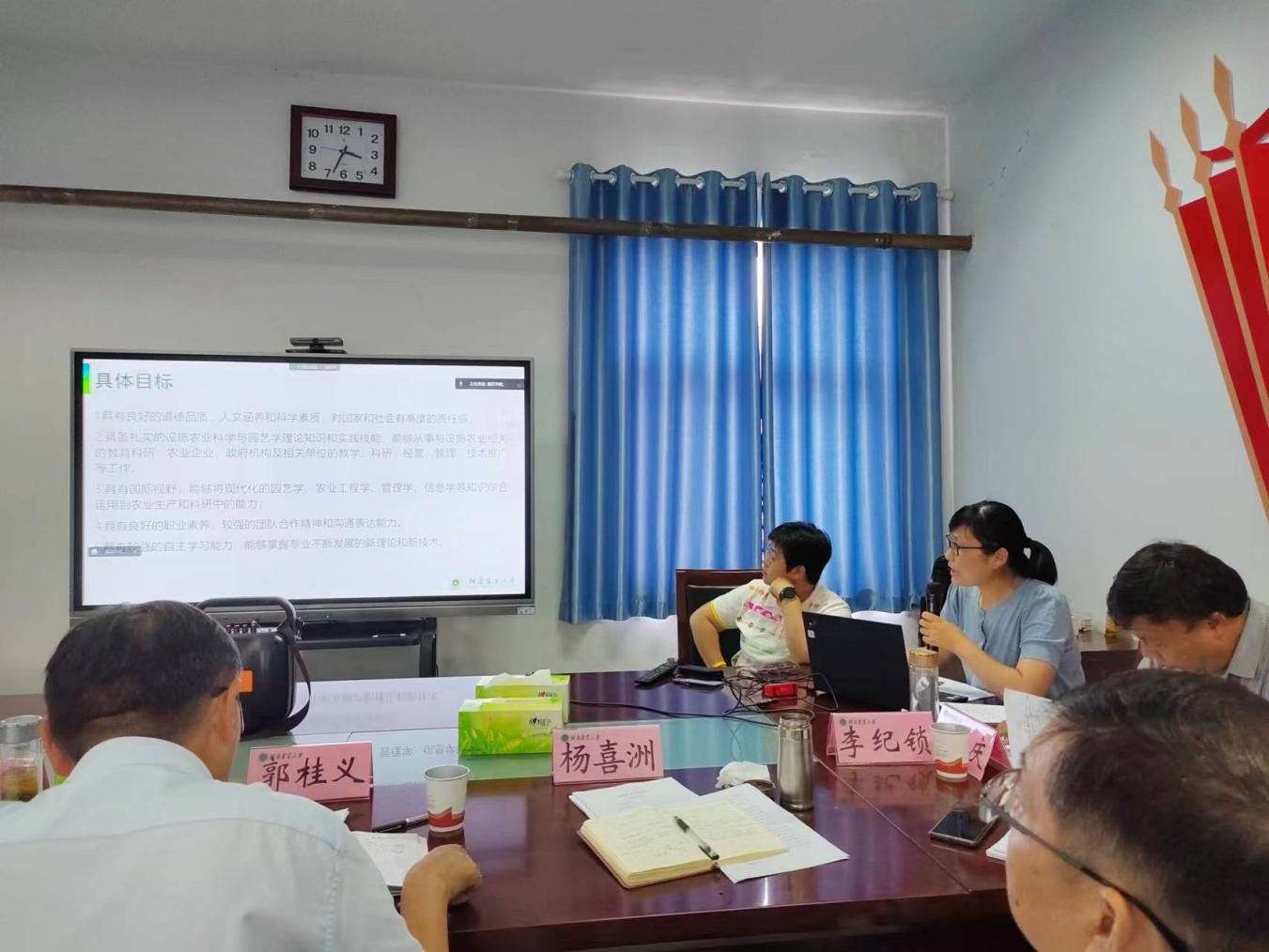 学科带头人冯建灿教授围绕“一个任务与四个形势”,详细介绍了人才培养方案修订的指导思想与要求。系主任分别对园艺、设施农业科学与工程、茶学三个专业本科人才培养方案修订情况进行了汇报。