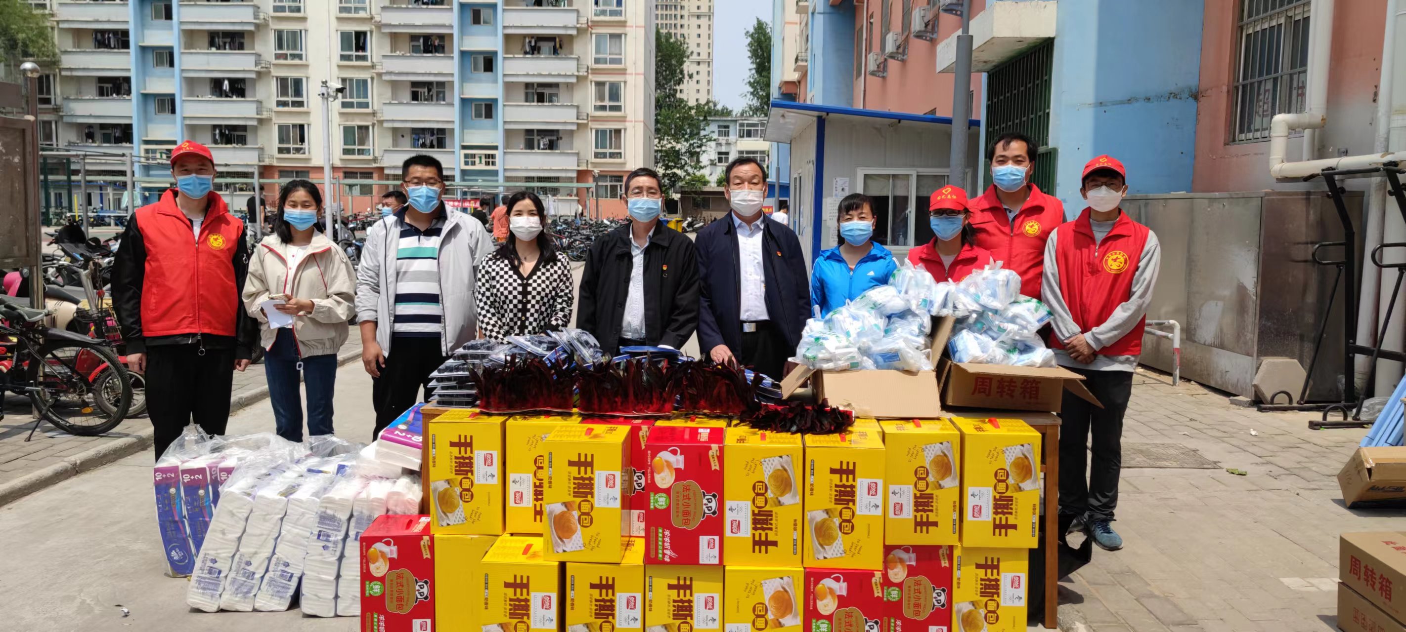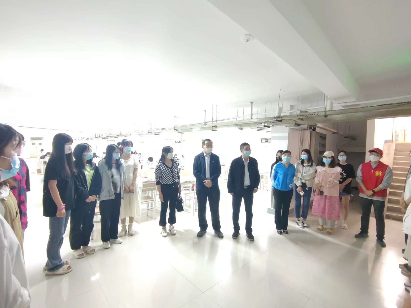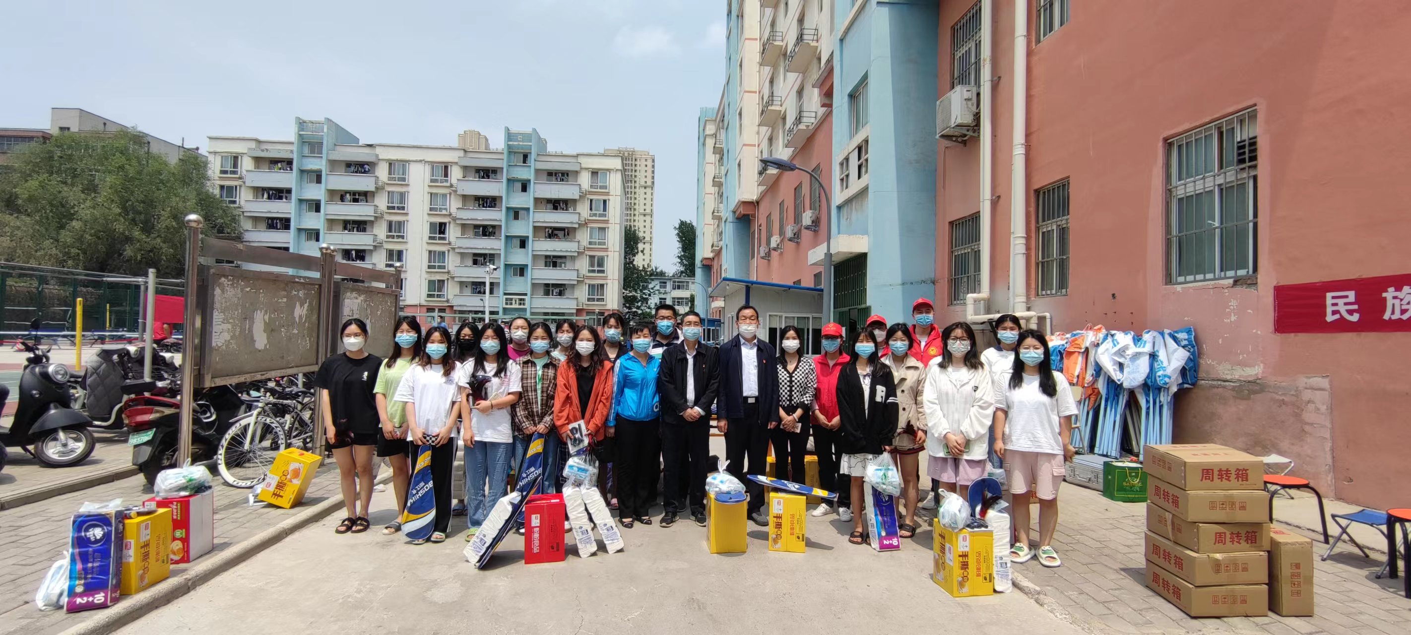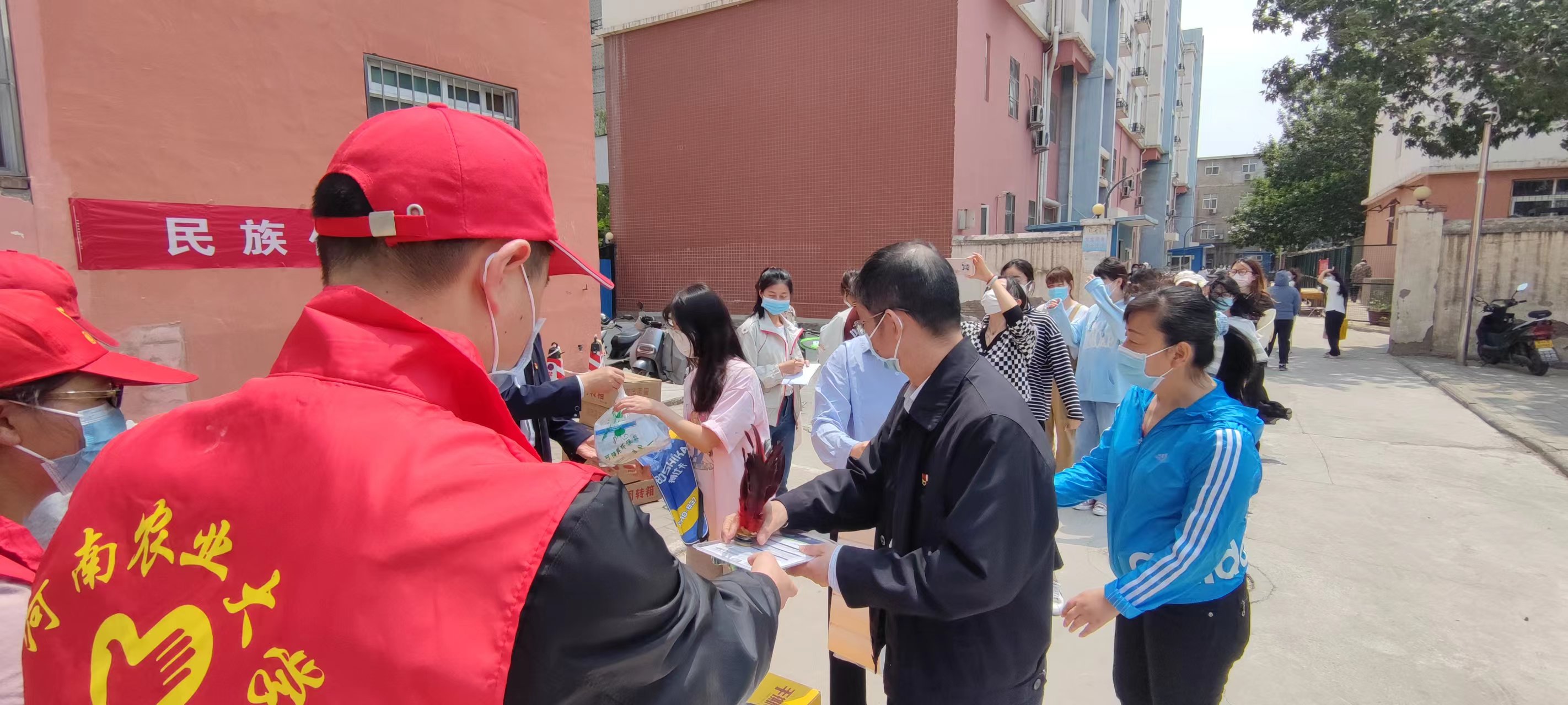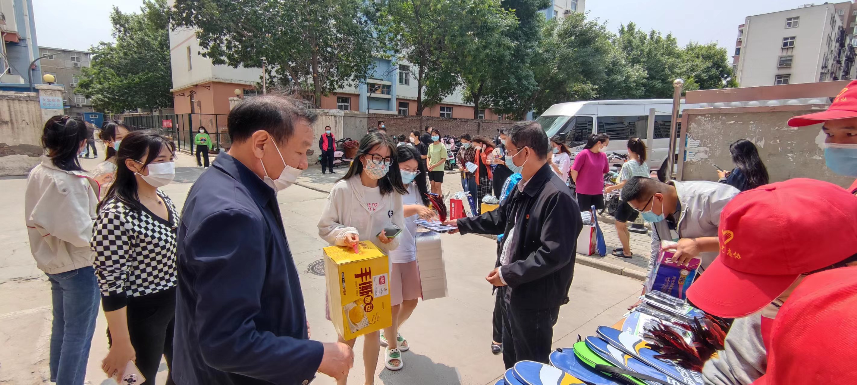 引导同学们科学抗疫,认真学习,积极锻炼,5月7日上午,肉番 党委书记杨喜洲、院长孙守如、院党委副书记毛会坡、副院长陈广辉及教师志愿者、各级辅导员共同看望慰问在第二生活区居住的同学们,并给各宿舍发放抗疫物资和运动器材。