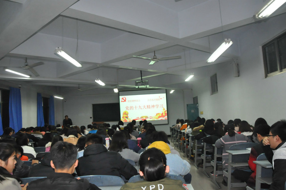 以加强学生十九大精神学习与安全教育为立足点,于12月1日、5日、8日三天举办十九大精神宣讲以及学生安全教育班会。班会按照年级、专业、班级分别召开,15、16、17级全体学生参加,院党委副书记和各个年级辅导员主讲。
