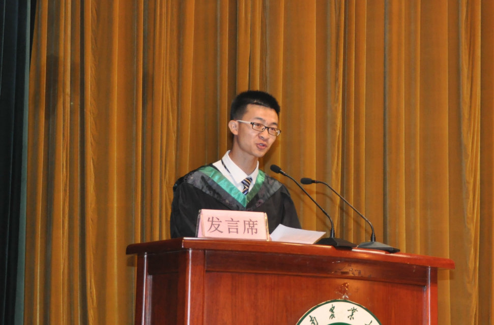 2013级茶学专业学生张豪杰作为本科生代表发言,向悉心培育的母校表示最真诚的谢意和祝福。毕业研究生代表范兴强发言,他表示在今后一定牢记恩师们的教诲,牢记院训,用努力和成功回报社会、回报母校。教师代表王吉庆教授发表寄语,为毕业生送去真挚的祝福。