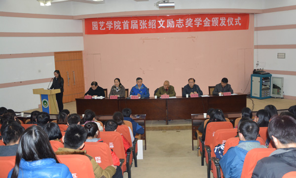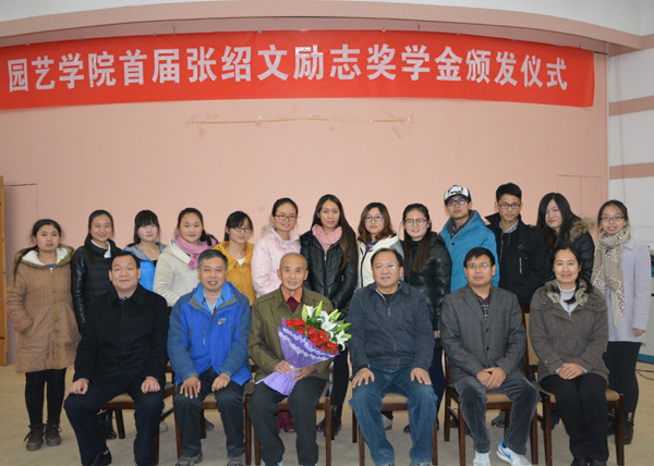 冯院长高度评价了张绍文教授长期以来对园艺产业做出的贡献,介绍了学院设立此项奖学金的目的,对捐资的豫艺种业科技发展有限公司及广大校友表示感谢,向获得首届“张绍文励志奖学金”的13名同学们表示祝贺。颁奖结束,园艺2012级2班郑志华同学代表获奖学生发言,表示牢记使命,投身园艺事业,勇于担当,回馈社会。
