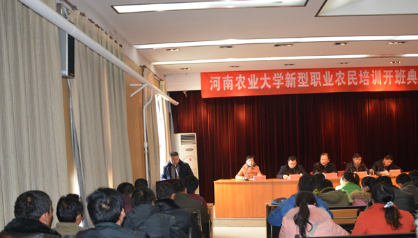 12月15日,肉番 在2号楼四楼报告厅隆重举行肉番 第四批新型职业农民培训开班典礼仪式,院党委耿超明书记出席了仪式并代表学院致欢迎辞,副院长马长生研究员、蔬菜系副主任胡建斌副教授参加了典礼仪式,果树系副主任郑先波副教授代表教师讲话,郑州买种种商务电子有限公司丁帅辉代表学员发言,参加本次典礼仪式的还有本次培训班相关管理人员以及110余名学员,仪式由院办公室主任陈广辉主持。