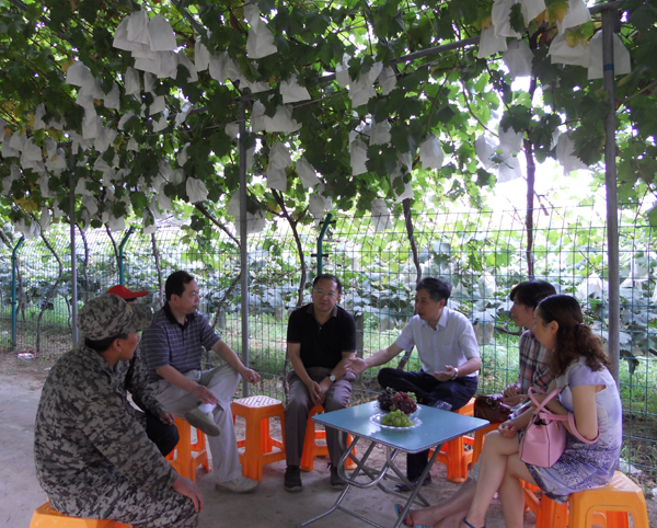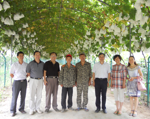 的校外“卓越园艺师”培养生产实习基地——郑州市农林科学研究所教学科研基地,看望正在那里进行葡萄生产、管理实习的王富国、王富强两名即将进入大三的学生。郑州市农林科研所副所长王国杰、果树研究室主任段罗顺热情的接待了院领导一行。