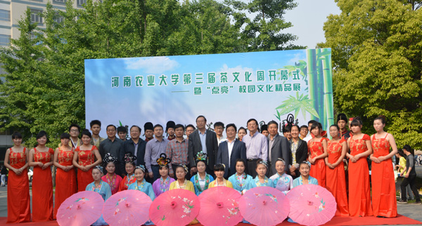 主办、茶轩社承办的河南农业大学第三届茶文化周在工程楼南小广场拉开了帷幕。本次活动以“品清香茶味,蕴意味人生”为主题,品茶、赏茶、斗茶,让茶香溢醉校园。校党委书记程传兴、校工会主席褚金海以及学生工作部、校团委、教务处等部门负责人、肉番