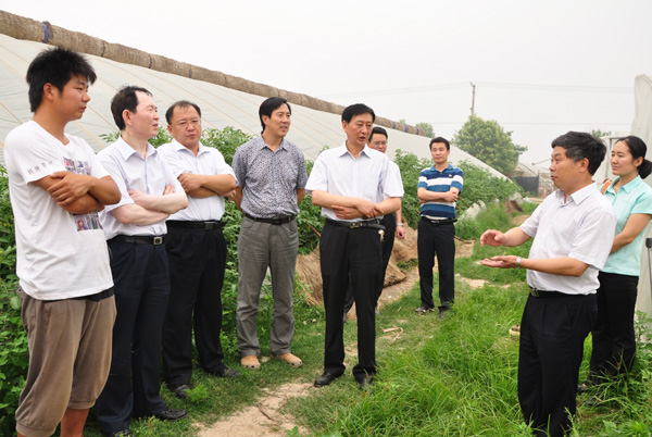 学生王鹏鹏、王继广的创业基地,视察了学生创业经营的西瓜、甜瓜、西红柿、辣椒等瓜菜设施栽培基地。
