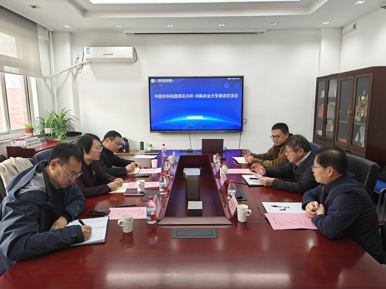 近日,学院党委书记郭娟、院长胡建斌一行赴中国农业科学院蔬菜花卉研究所开展调研交流。副院长杨路明及蔬菜系副主任安光辉等陪同参加。中国农业科学院蔬菜花卉研究所所长张友军院士、副所长张圣平、办公室主任王万兴等出席座谈会。