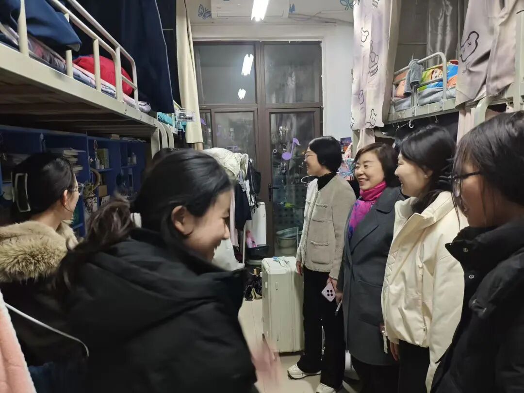 走访中,老师们与同学们亲切交流,细致询问大家寒假生活、返校适应情况及新学期学习规划,耐心倾听学习、生活、科研等方面的需求。同时实地查看宿舍环境卫生与安全状况,叮嘱同学们返校后及时给家人报平安,规范用电、提高反诈意识,遵守校纪校规,注意防寒保暖与身心健康。学院领导勉励同学们迅速调整状态,树立明确目标,勤学笃行、锐意进取,共同营造文明和谐的宿舍氛围。