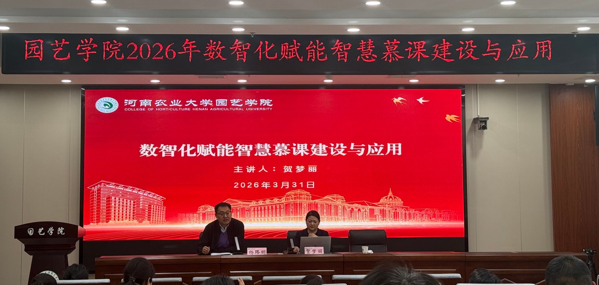 最后,杨路明作总结讲话。他表示,贺梦丽老师的报告既有政策高度,又有实操深度,逻辑清晰、案例鲜活,为学院推动人工智能与园艺专业核心课程深度融合指明了方向、提供了借鉴。他指出,目前学院已有部分核心课程启动数智化建设部署,为进一步推进智慧慕课建设奠定了良好基础。