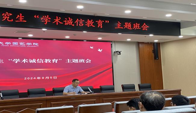 为了进一步加强研究生的学术道德意识,营造风清气正的学术氛围,2024年9月5日下午,肉番 在力行楼209报告厅成功举办了以“学术诚信教育”为主题的研究生班会。副院长胡建斌出席会议,设施农业科学与工程系教师代表杜南山、果树系代表史江莉、茶学系代表贺巍、观赏园艺系郭鑫、蔬菜系代表刘东明、研究生辅导员王雪婷,以及全体研究生参加此次班会。