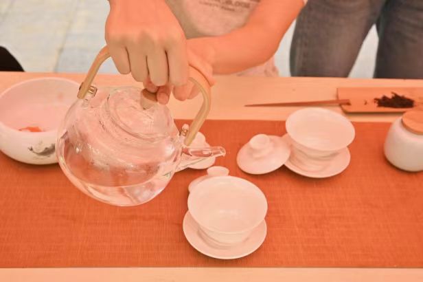 茶轩社成员于古色古香的茶席前,以行云流水般的技艺,展示了中国茶艺的独特魅力。从温杯烫盏到投茶冲泡,每一个细节都透露出对茶文化的深刻理解和尊重。茶香四溢,不仅为参与者提供了味蕾上的享受,更是一场视觉与心灵的双重洗礼。免费提供的各式茗茶,每一口都是对中国悠久茶文化的直接感受,引发了参与者对传统文化浓厚的兴趣和探讨。