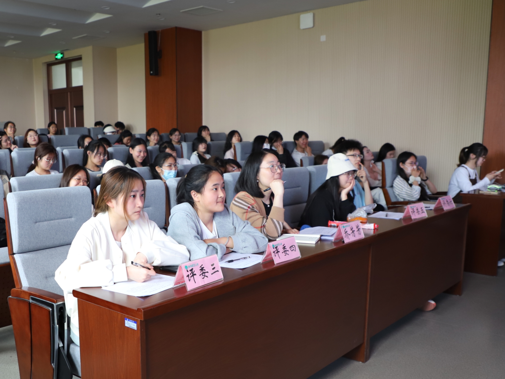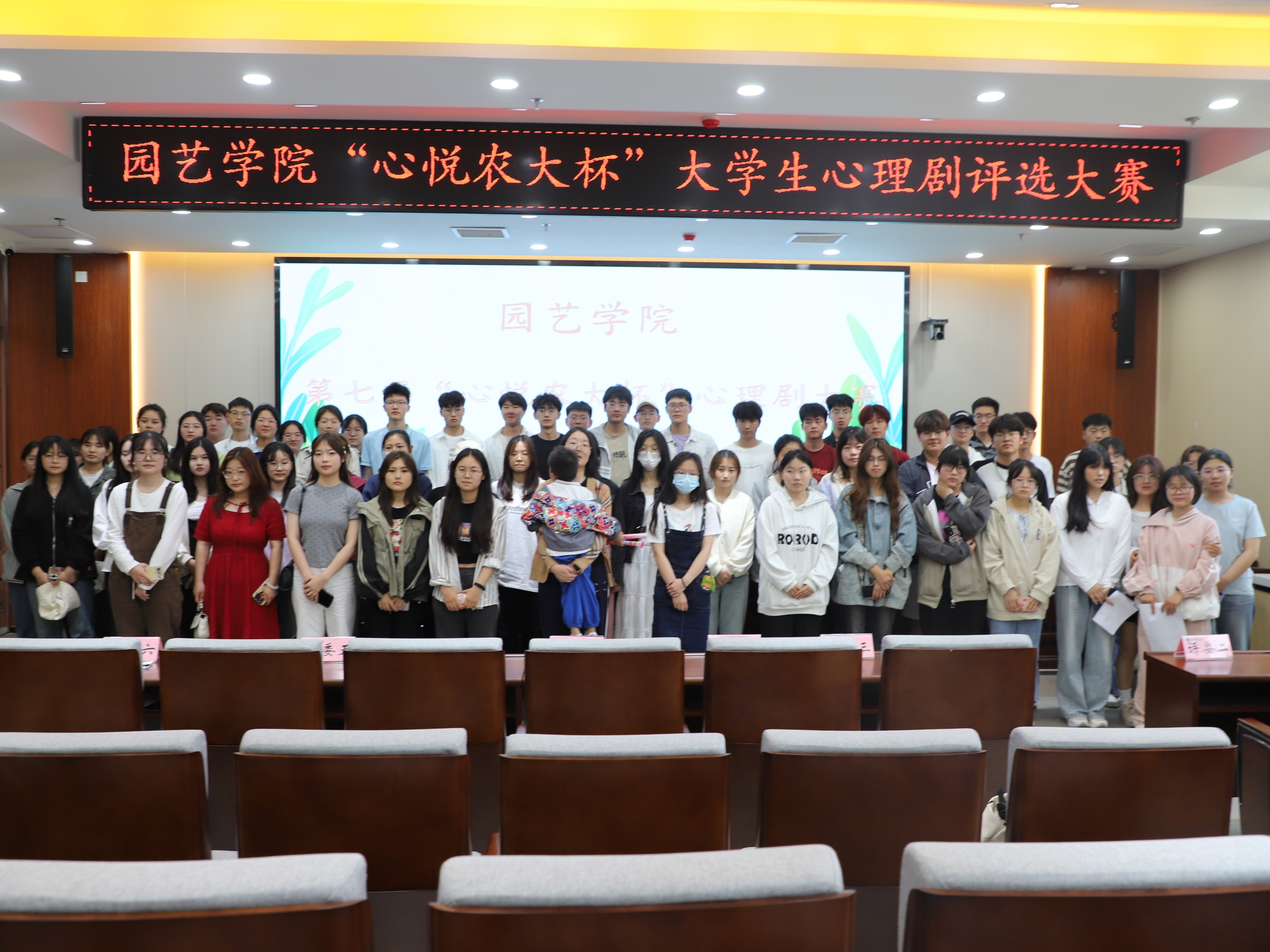 于龙子湖校区力行楼北209会议室开展“心悦农大杯”大学生心理剧评选大赛,2022级辅导员乔芳芳和2022级学生代表刘云、刘瑶瑶、赵双双、李禄裕、马永甜、王博政担任评委,2022级和2023级学生踊跃报名现场观赛。