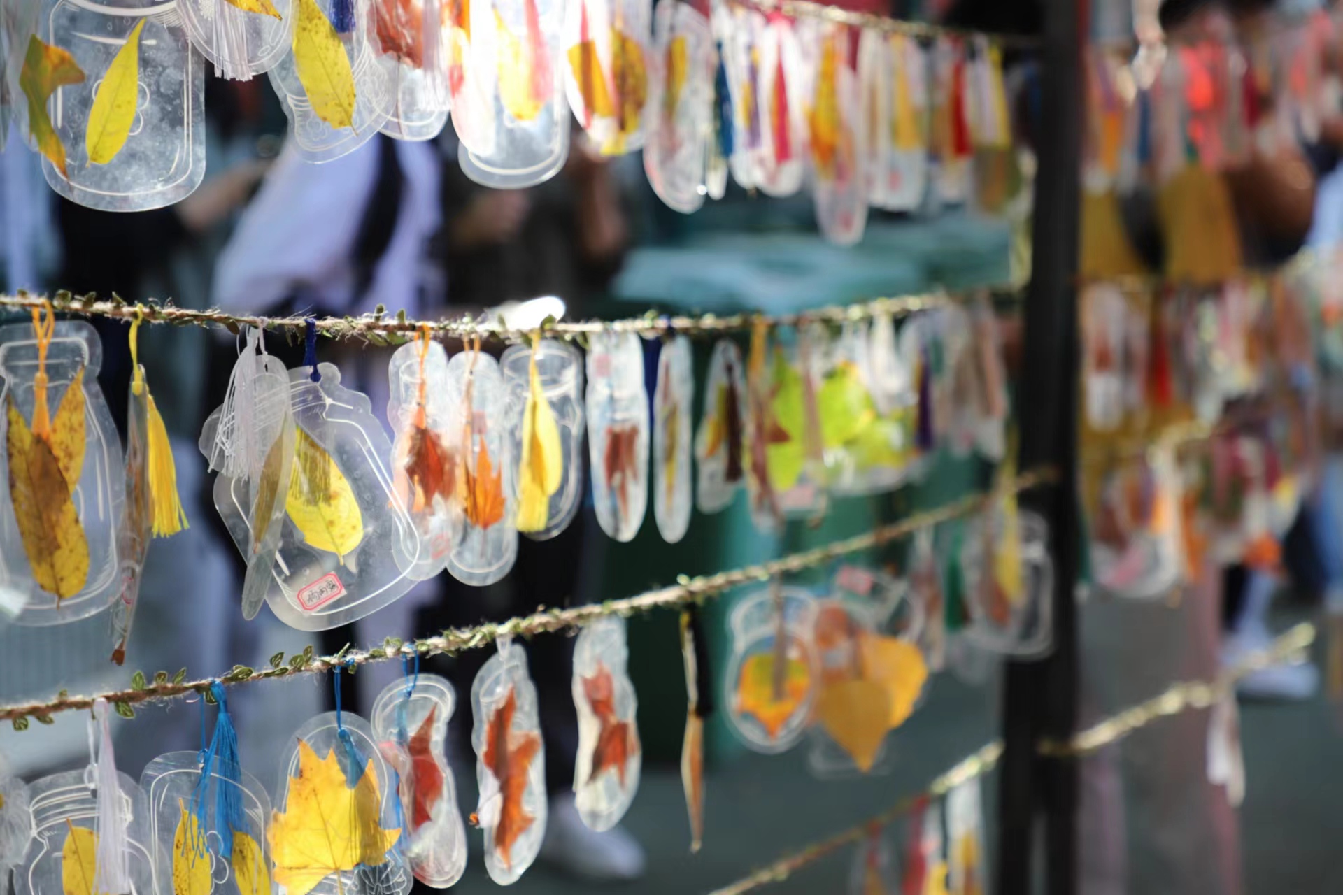 负责承办的“Go!去秋日里”活动需要同学们在操场内去寻找秋日美景并拍照记录,同时可以挑拣地上散落的树叶或者花瓣用来制作书签。通过落叶书签的制作,让同学们在忙碌的学习生活中观察到了平日里不曾注意的美景,感受到了大自然的魅力,同时在实践中也提高了大家的动手能力。参与活动的同学可以获得一枚印章,入场券上面的印章达到一定数目可以参与抽奖活动。活动过程中精彩纷呈,现场气氛轻松愉悦,一定程度上帮助了学生们摒弃烦恼,释放压力,拥抱快乐生活。