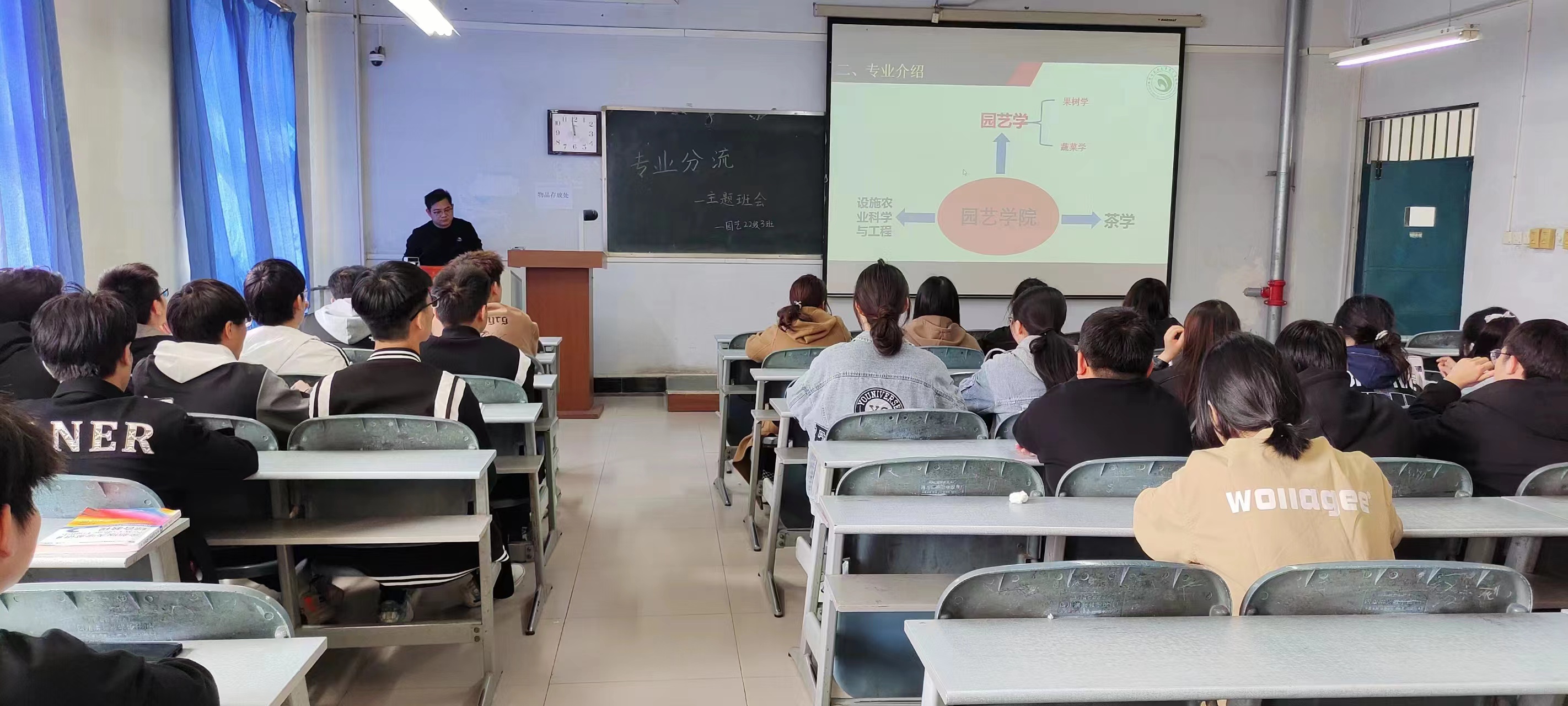 会议伊始,班主任老师结合PPT和自己的经验向同学们讲解了什么是专业分流和专业分流工作实施方案,并从人才培养目标、专业培养方案、未来发展前景和师资力量等方面详细地介绍了园艺、设施农业科学与工程、茶学三个专业各自的特色优势,分析了三个专业的考研就业方向。然后,老师建议同学们在填报专业的过程中要立足自己的个人兴趣和职业规划,不能随波逐流,选择最适合自己的专业,同时老师希望大家能够明白专业没有好坏之分,每个专业都有自己的独特之处,希望同学们无论选择哪个专业都要好好学习,为自己的未来努力奋斗。最后,班主任老师耐心地解答了同学们提出的关于专业分流的问题并希望同学们可以重视这次的专业分流。