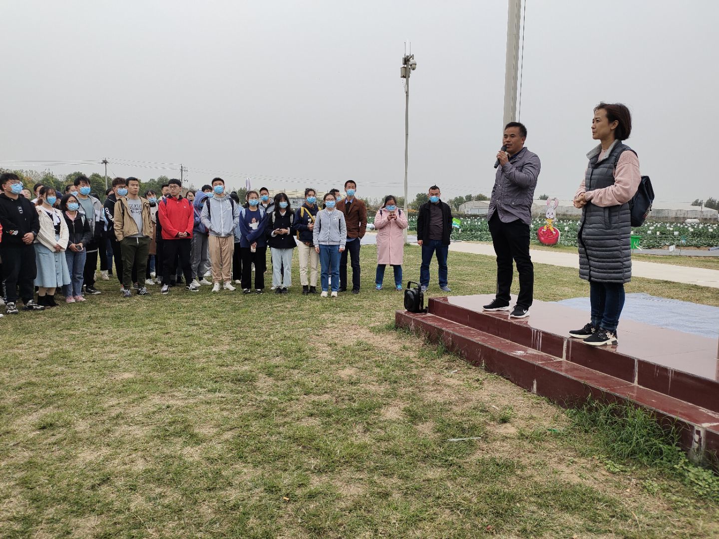 活动伊始,贾芝琪老师介绍了本次实习参观的目的和意义,介绍了园区负责人肉番 98级园艺专业校友赵英凯先生;紧接着赵英凯先生向大家简单介绍了园区情况,包括园区规模,展出品种等,并呼吁大家多观察,多思考;随后,贾芝琪老师向大家说明了本次活动对同学们在育种和蔬菜两个学科实习的观察重点、作业要求以及参观过程中需要遵守的规则;最后,同学们分散参观学习,充分利用两个小时的时间从田地中汲取知识。