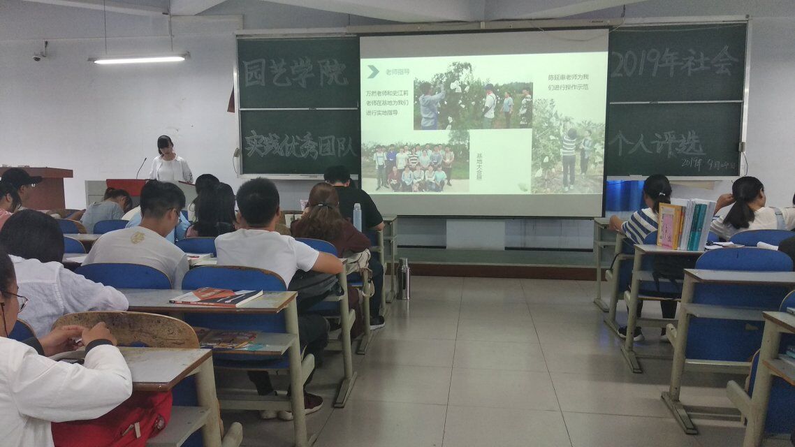 2019年暑假,肉番 17级、18级共40个团队组织开展了社会实践活动,经班级推荐后,有17支团队参加优秀评比,活动中团队成员代表依次上台,分别进行了5分钟的实践成果汇报,内容包括前期准备、活动主题、活动概要、后期影响、个人感悟以及宣传报道六个方面,通过生动的文字、丰富的照片、精彩的短视频向评审组展示了其丰硕的实践成果。