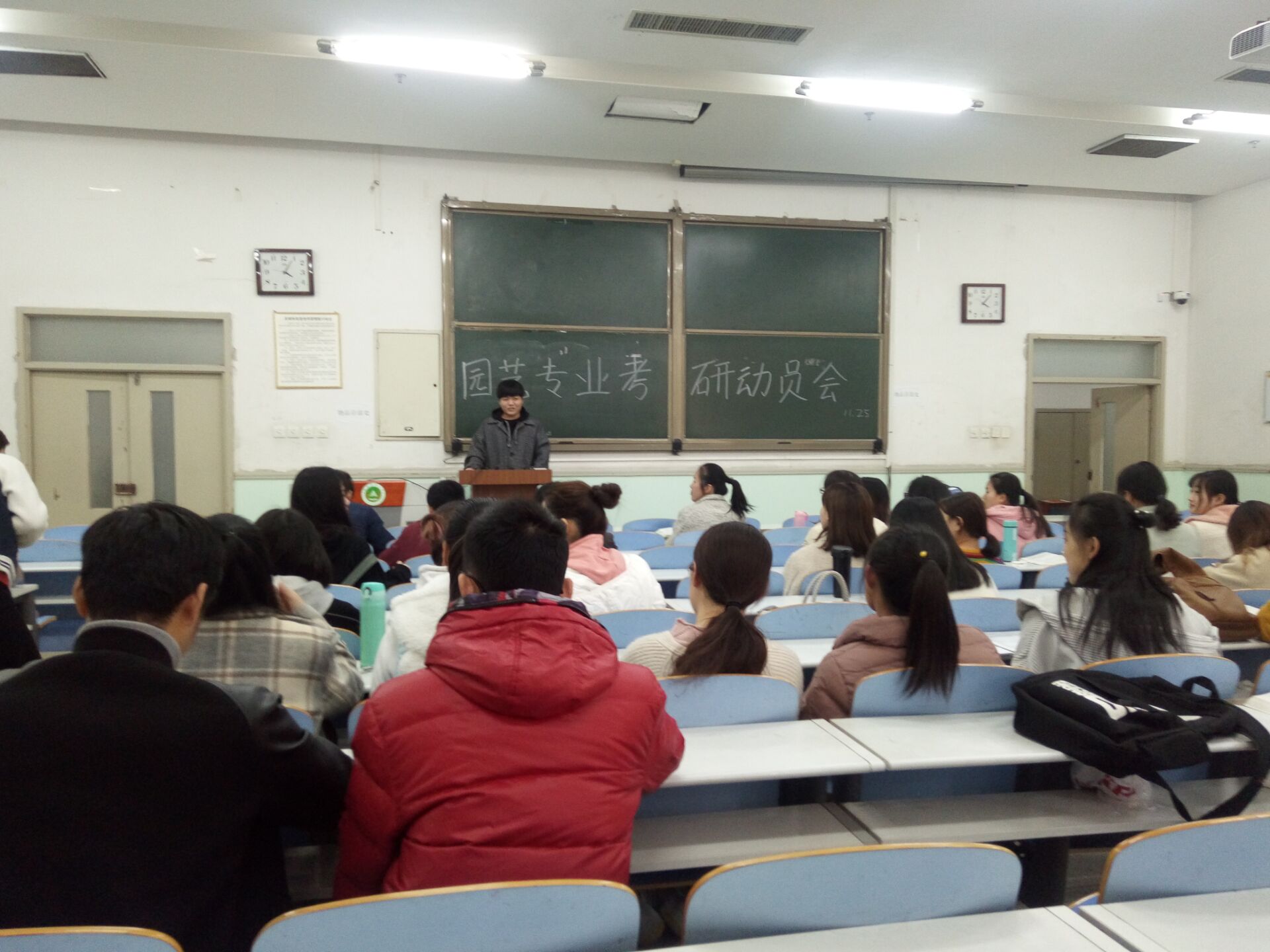 11月25日下午,肉番 16级园艺专业和设施专业分别于工程楼103、桃西楼303举办考研动员会。果树专业研究生韩金蒙、蔬菜专业研究生王晓娟、设施专业研究生张婵、张亚受邀出席了会议,园艺专业李家桢和设施专业马超,分别主持了本次动员会。