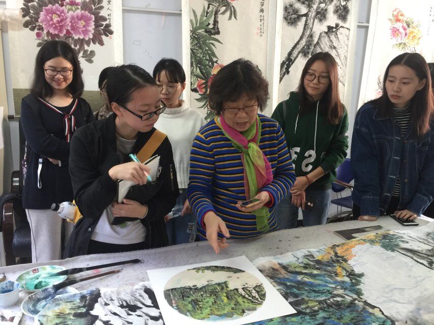 走进国画室时,姚黎老师首先对同学们的到来表示欢迎,同学们面对姚老师的亲切问候,对学习绘画技巧愈发的感兴趣。姚老师首先向大家介绍了国画的概念、分类以及所使用的工具,其中工具包括文房四宝笔、墨、纸、砚。在介绍国画分类时姚老师以墙壁上和其他老师的优秀画作为例向大家讲解写意画和工笔画的画法、特点以及区别等问题。最后姚老师耐心解答了同学们关于构图、色调运用等方面的问题,同学们均受益匪浅。陈桃老师总结道,希望大家可以找到自己的兴趣爱好,并把它发展成自己的特长,向优秀的关工委老师们学习。