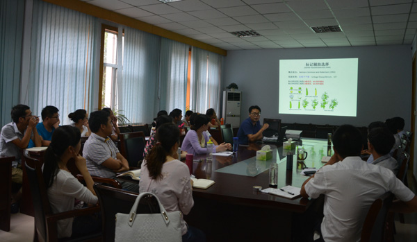 校特聘教授杨路明博士所做的题为“分子标记辅助选择育种”的报告展开交流和讨论,吸引了很多对分子标记辅助选择感兴趣的老师和研究生前来聆听并积极参与讨论。