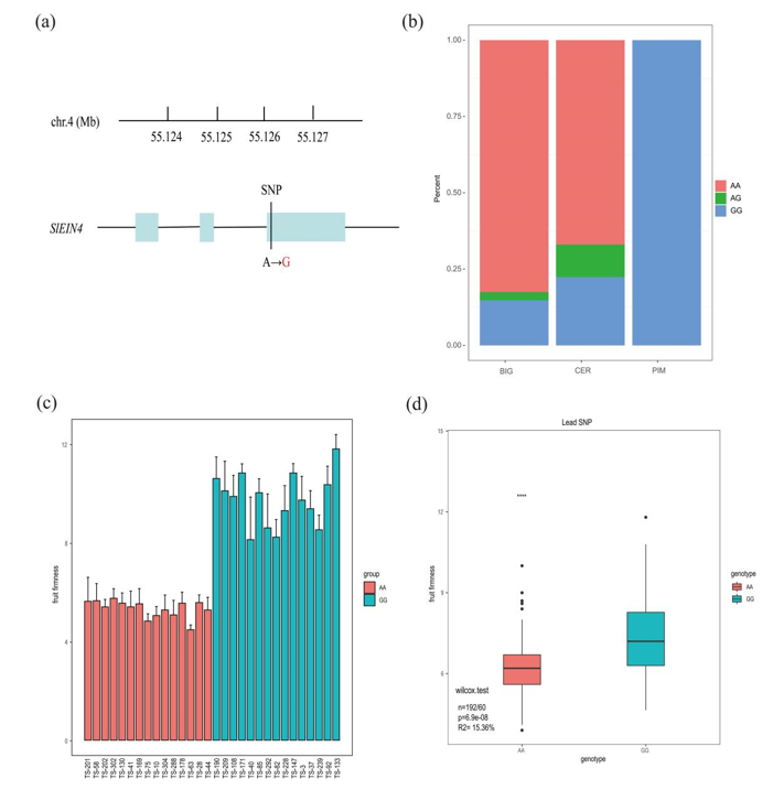 在该位点的SNP突变(A-G)对番茄果实硬度具有重要影响。进一步研究发现,