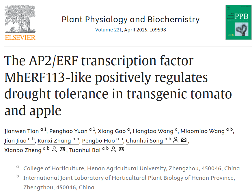 苹果逆境生物学与简约栽培技术团队在Plant physiology and Biochemistry发表了题为“The AP2/ERF transcription factor