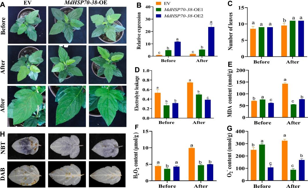 MdHSP70-38正向调控苹果的耐盐性,研究结果为苹果耐盐遗传改良奠定了理论基础、并提供了潜在的基因资源。