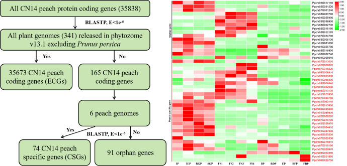 孤儿基因是指那些没有已知亲属关系的基因,它们在基因组中独立存在,通常被认为是进化过程中新出现的基因。随着测序技术的发展和已测序基因组数量的迅速增加,已经在各种物种中识别并表征了物种特异性基因(LSG)。与其它保守功能基因类似,LSG在生物进化和发育中起着关键作用。LSG包括物种特异基因和孤儿基因。然而,对桃LSG的理解仍然有限。