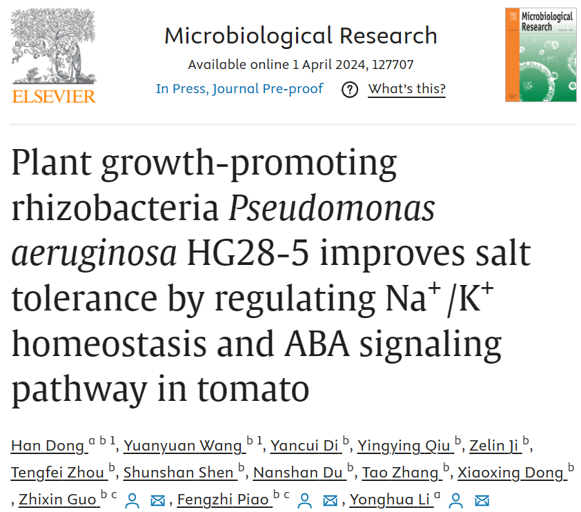 文章链接:Plant growth-promoting rhizobacteria Pseudomonas aeruginosa HG28-5 improves salt tolerance by regulating Na+/K+ homeostasis and ABA signaling pathway in tomato - ScienceDirect