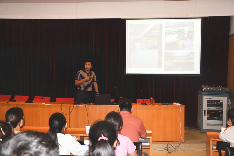 师生做学术报告,报告会由学院科研秘书胡建斌教授主持。