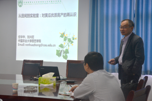 师生作了题为“从田间到实验室:对黄瓜优质高产的再认识”的学术报告,报告会由蔬菜系主任胡建斌教授主持,学院部分教授老师以及研究生参加。